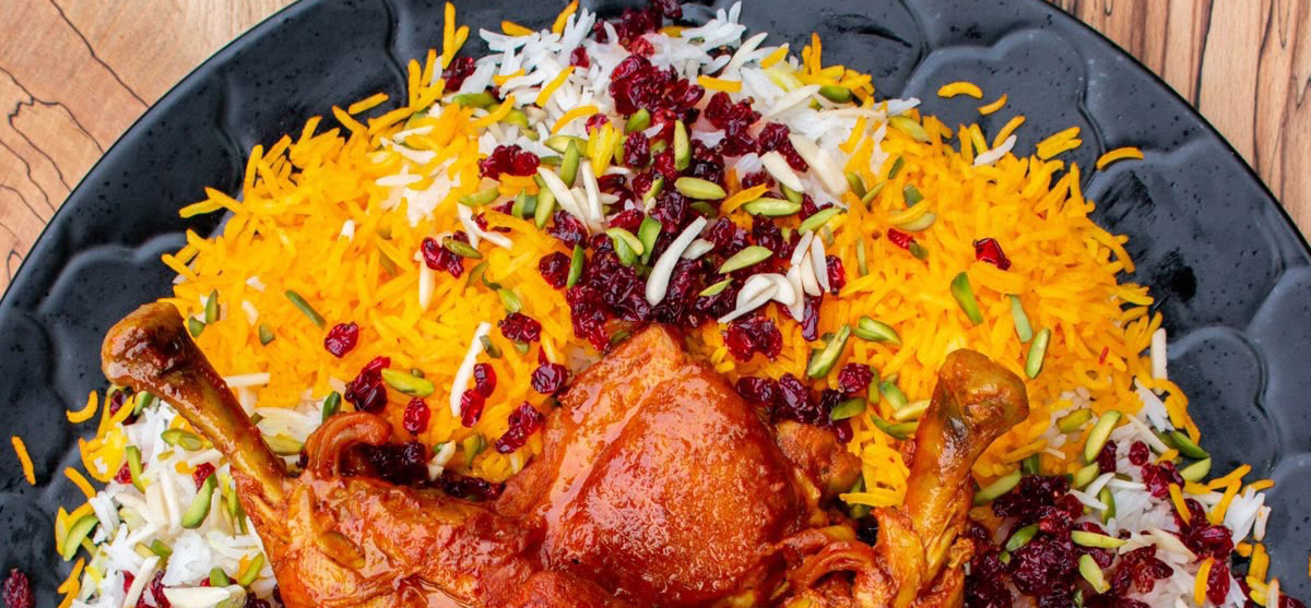 Zereshk Polo ba Morgh – Safranreis mit Berberitzen und Huhn